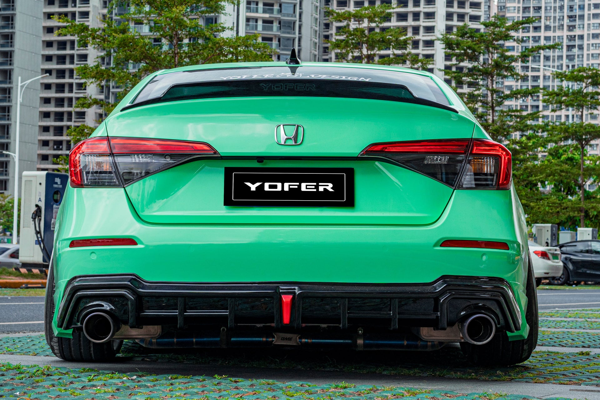 Honda Civic 11th Gen FE1 FE2 FE4 2022-ON with Aftermarket Parts - Rear Diffuser & Canards PP from Yofer USA