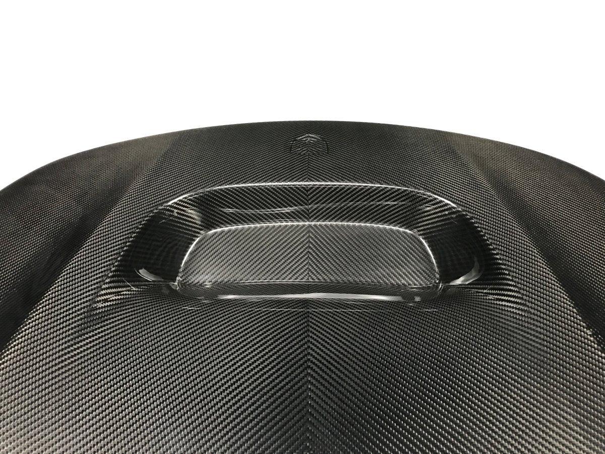 FRP is NOT Carbon Fiber and is a composite material of carbon polymers and fiberglass. Coming in a fresh sanded and primed finish, FRP is ready for paint or wrap! Carbon Fiber, depending on the brand and part, can be offered in Pre-Preg or Vacuum Carbon. Carbon Fiber is a woven pattern of carbon fibers, standard in a 3k weave.